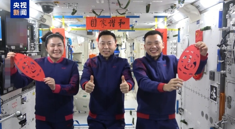 é a terceira Festa da Primavera desde a conclus?o total da esta??o espacial chinesa. Nove tripulantes da Shenzhou-15, Shenzhou-17 e Shenzhou-19 deram as boas-vindas ao Ano Novo e à Festival da Primavera no espa?o.