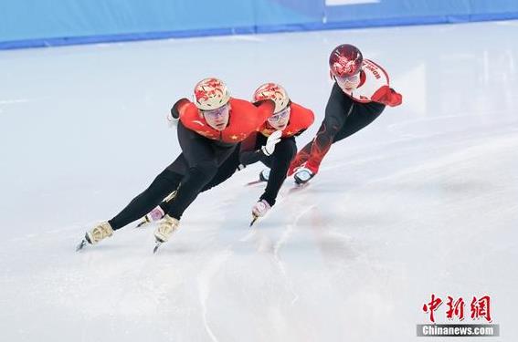 A equipe chinesa de patina??o de velocidade em pista curta conduziu o treinamento pré-competi??o para os Jogos Asiáticos de Inverno de 2025, na província de Heilongjiang, no nordeste da China, em 6 de fevereiro de 2025. (Foto: Zhao Yuhang/China News Service)