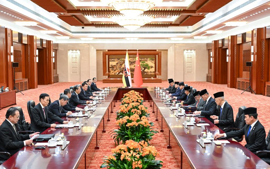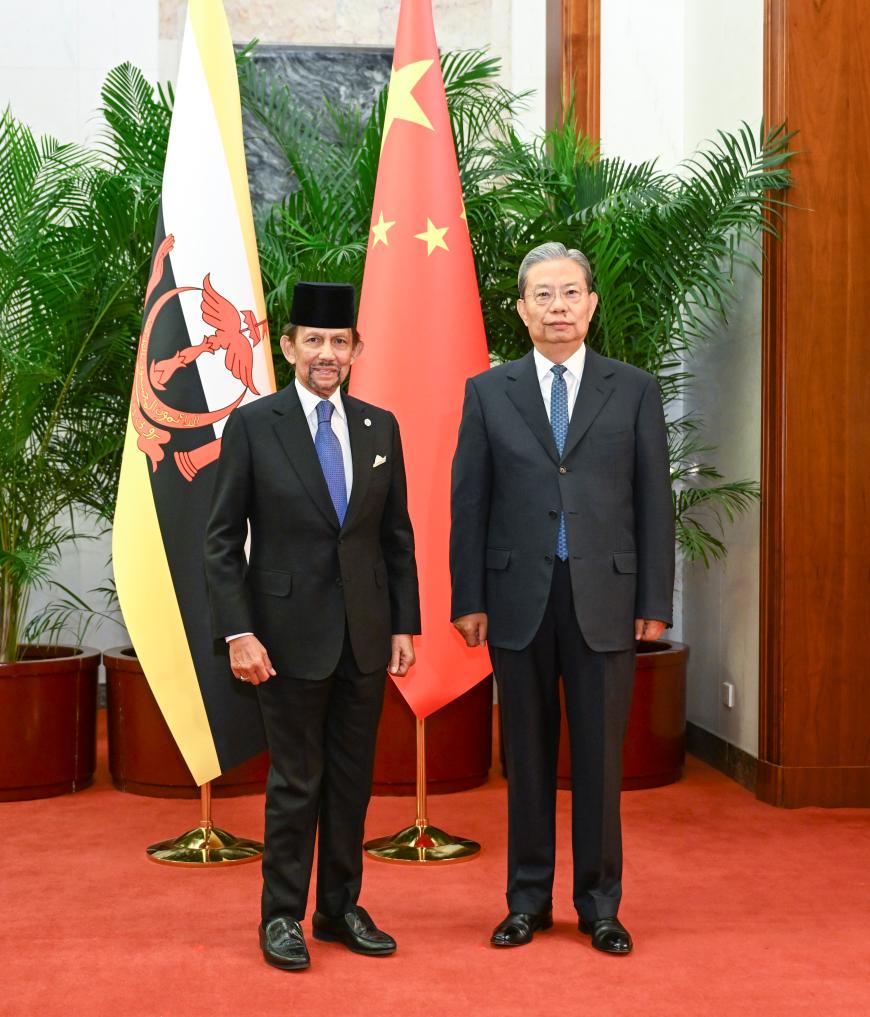 O chefe do Legislativo da China, Zhao Leji, reuniu-se nesta quinta-feira com o sult?o de Brunei, Haji Hassanal Bolkiah Mu'izzaddin Waddaulah, em Beijing.