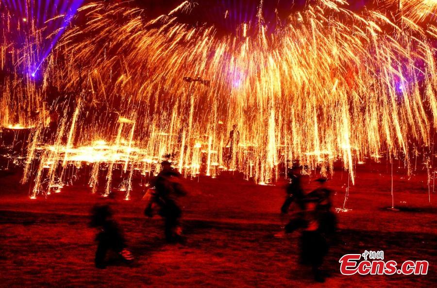 A performance das "flores de ferro", que consiste em espalhar ferro fundido para formar deslumbrantes fogos de artifício, encantou os visitantes.