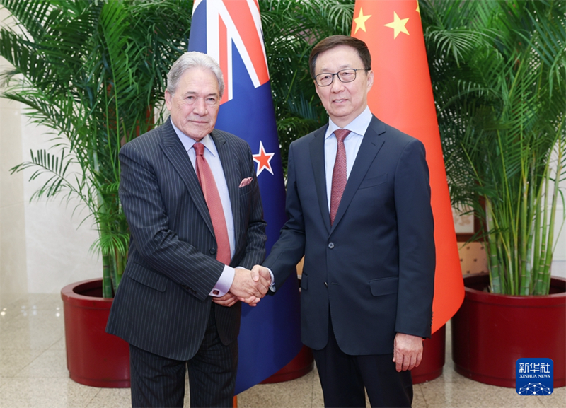 O vice-presidente chinês, Han Zheng, reuniu-se com o vice-primeiro-ministro e ministro das Rela??es Exteriores da Nova Zelandia, Winston Peters, em Beijing na quarta-feira.