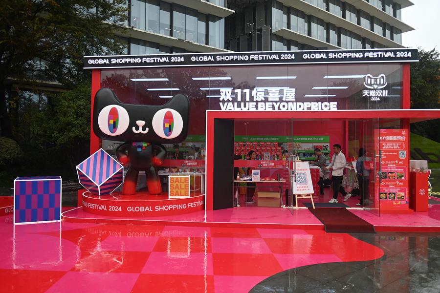 Instala??o externa com o festival de compras "Duplo 11" no Parque Xixi do Grupo Alibaba, em Hangzhou, província de Zhejiang, leste da China. (Foto: Huang Zongzhi/Xinhua)