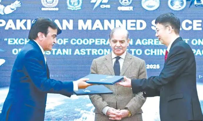 O acordo, assinado pela Agência Espacial Tripulada da China e pela Comiss?o de Pesquisa Espacial e da Atmosfera Superior do Paquist?o, em uma cerim?nia em Islamabad, na sexta-feira, abrange os esfor?os bilaterais para selecionar e treinar astronautas paquistaneses.
