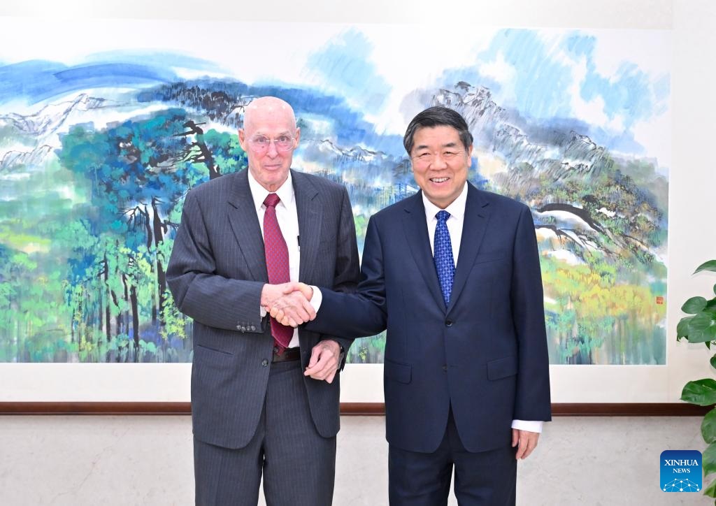 O alto funcionário chinês He Lifeng reuniu-se no domingo com o ex-secretário do Tesouro dos EUA, Henry Paulson, em Beijing, e os dois lados trocaram opini?es sobre as rela??es econ?micas e comerciais China-EUA e a economia global.