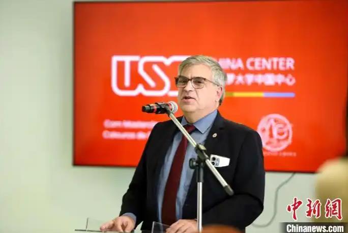 O reitor da Universidade de S?o Paulo, Carlos Gilberto Kalotti, discursa na cerim?nia de inaugura??o do Centro Chinês da USP. (Foto: China News Service)
