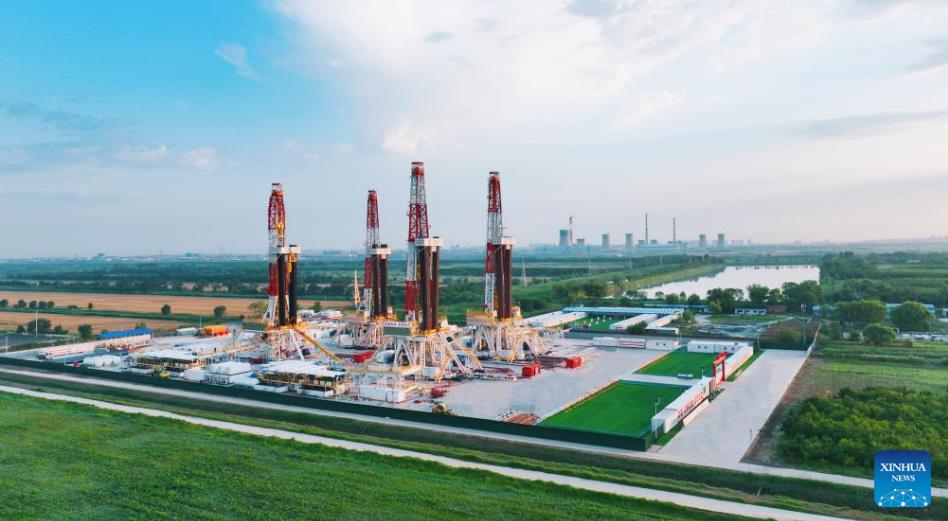 Local de perfura??o da zona de demonstra??o nacional de óleo de xisto de Jiyang na província de Shandong, leste da China. A China Petrochemical Corporation (Sinopec Group), a maior refinaria de petróleo do país, anunciou a descoberta de mais de 140 milh?es de toneladas de reserva comprovada de óleo de xisto na província de Shandong, leste da China. (Foto: Xinhua)