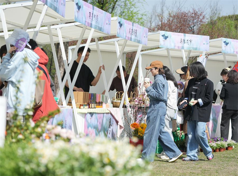 Turistas visitam um mercado no Parque da Zona úmida de Xixi em Hangzhou, província de Zhejiang, leste da China, em 24 de mar?o de 2024. (Foto: Weng Xinyang/Xinhua)