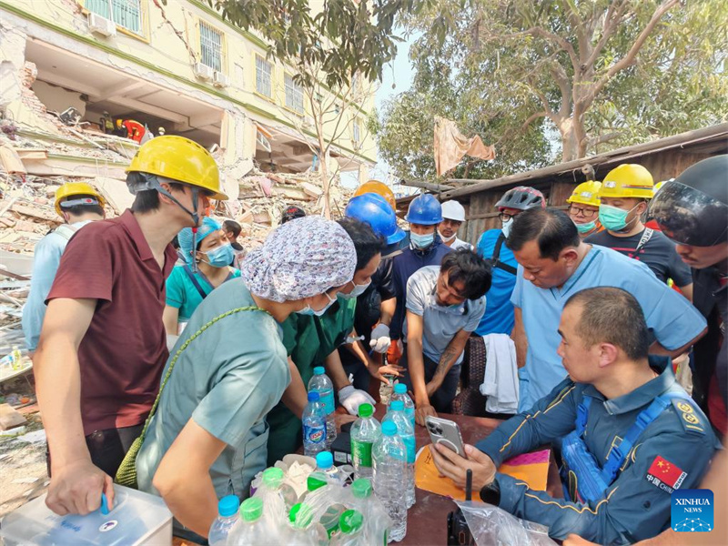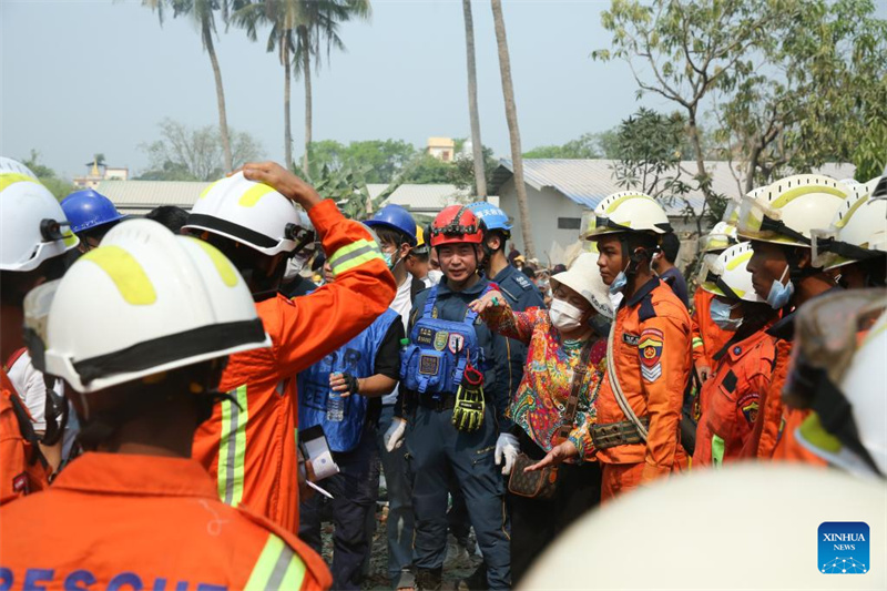 Equipes de resgate discutem planos de resgate após um terremoto em Mandalay, Mianmar, em 30 de mar?o de 2025. Cerca de 1.700 pessoas morreram, 3.400 ficaram feridas e 300 continuam desaparecidas no grande terremoto em Mianmar, de acordo com o Conselho de Administra??o Estatal do país no domingo. (Xinhua)