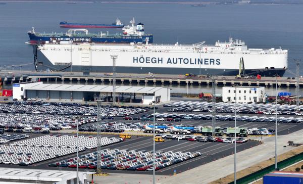 Veículos com destino à exporta??o aguardam embarque no Porto de Taicang, província de Jiangsu. (Foto: Ji Haixin/China Daily)