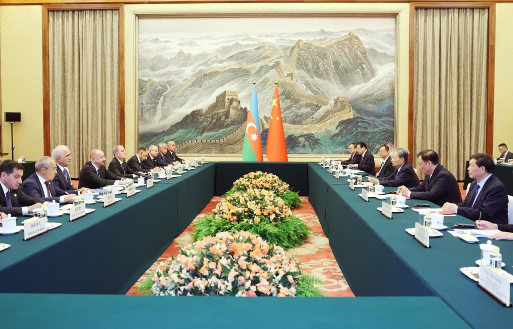 Observando que as rela??es entre o Azerbaij?o e a China est?o no seu melhor momento na história, Aliyev disse que o Azerbaij?o adere ao princípio de Uma Só China e está disposto a aprofundar a coopera??o econ?mica e comercial, cultural e interpessoal, bem como a colabora??o internacional com a China, além de aumentar os intercambios entre os órg?os legislativos para injetar forte impulso no desenvolvimento das rela??es bilaterais.