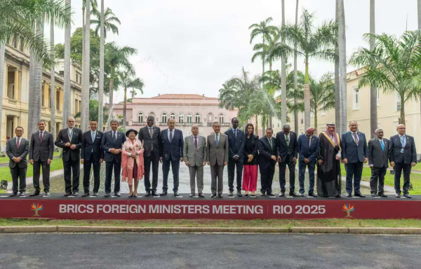 Os países do BRICS apoiam o plano de recupera??o e reconstru??o de Gaza endossado por países árabes e islamicos e defendem firmemente o princípio de que "os palestinos governem a Palestina", afirmou Wang.