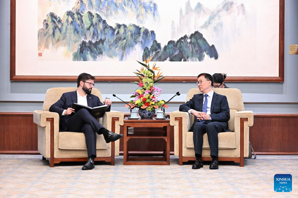 O vice-presidente chinês, Han Zheng, reuniu-se com o presidente chileno, Gabriel Boric, em Beijing nesta quarta-feira.
