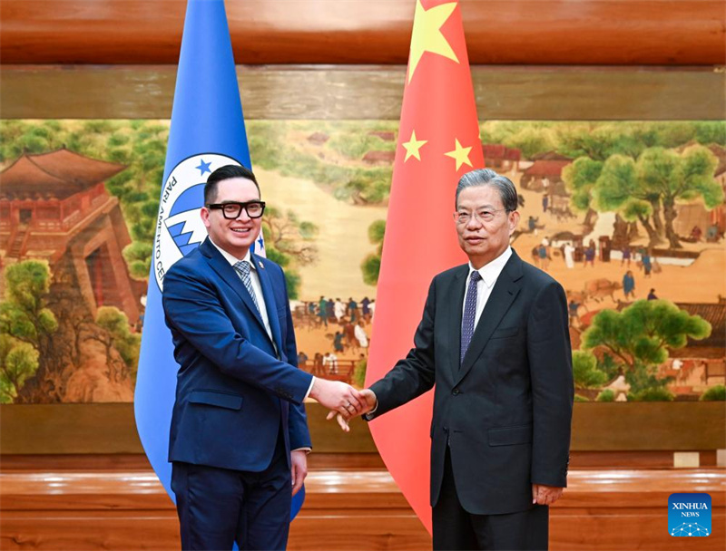 Zhao Leji, o mais alto legislador da China, reuniu-se com Carlos Hernandez, presidente do Parlamento Centro-Americano, em Beijing na quarta-feira.