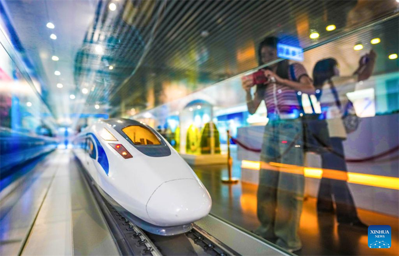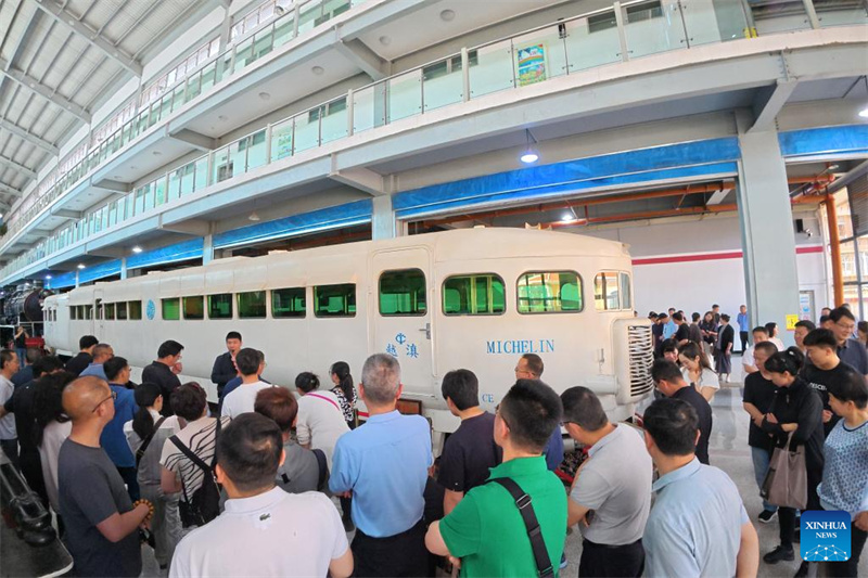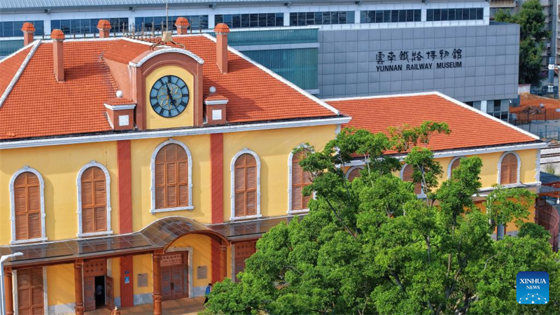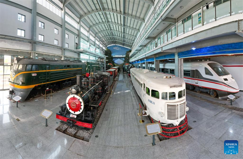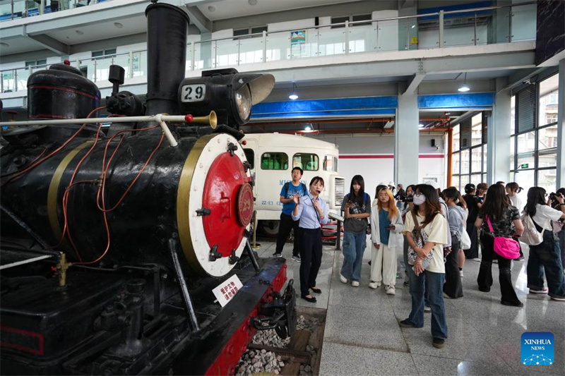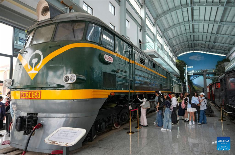 Instalado na Esta??o Ferroviária Norte de Kunming, o Museu Ferroviário de Yunnan utiliza a história centenária do desenvolvimento da ferrovia de Yunnan como principal narrativa para tra?ar a evolu??o gradual dos padr?es de bitola ferroviária, de métrica para polegada e bitola padr?o, bem como as tecnologias ferroviárias, desde locomotivas a vapor até trilhos de alta velocidade. (Chen Xinbo/Xinhua)