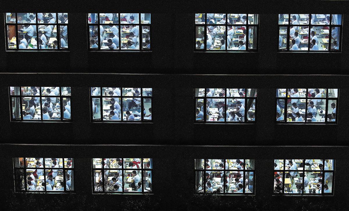 Alunos se preparam para os próximos exames de admiss?o à faculdade na Escola Secundária Fengfeng no 1, em Handan, província de Hebei, na noite de ter?a-feira. (Foto: Hao Qunying/China Daily)