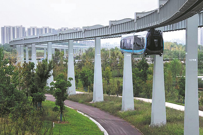 "O teleférico de 10,5 quil?metros de extens?o atravessa parques industriais de alta tecnologia e parques florestais, combinando tecnologia com natureza e aumentando o apelo deste novo meio de transporte", acrescentou Hu.