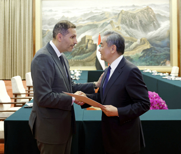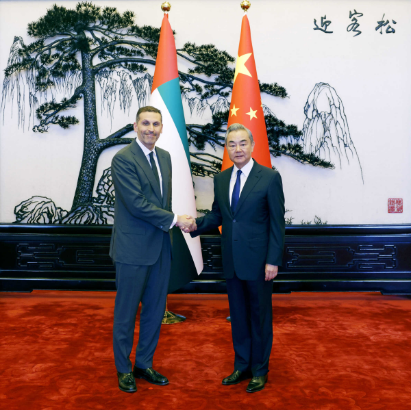Wang Yi, o mais alto diplomata da China, se reuniu com Khaldoon Khalifa Al Mubarak, enviado especial do presidente dos Emirados árabes Unidos (EAU) à China, nesta quarta-feira.
