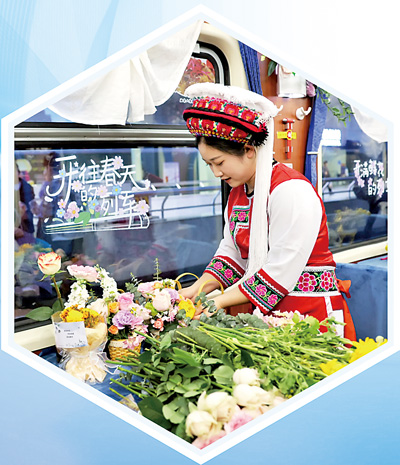 Este é o primeiro trem chinês com tema floral, desenvolvido em conjunto pela China Railway Kunming Group Co., Ltd. e pelo departamento cultural e de turismo de Yunnan. O trem apresenta arranjos florais frescos todos os dias durante toda a viagem.