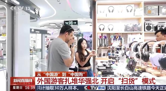 Turistas estrangeiros fazem compras em Huaqiangbei, um dos maiores mercados de eletr?nicos do mundo, localizado na cidade de Shenzhen, província de Guangdong, sul da China. (Foto/CCTV News)