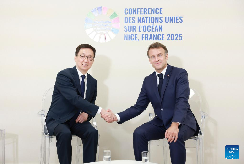 Han disse que sua participa??o na Conferência dos Oceanos da ONU visa implementar o importante consenso alcan?ado pelos dois chefes de Estado, reflete o apoio à ONU e à Fran?a na realiza??o da conferência e promove a implementa??o da Agenda 2030 da ONU para o Desenvolvimento Sustentável.