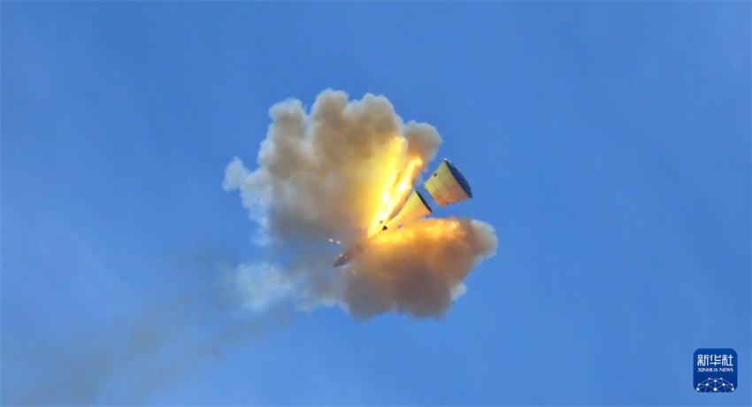 Após cerca de 20 segundos, o conjunto atingiu a altura prevista, momento em que a cápsula de retorno se separou com seguran?a da torre de escape, e os paraquedas se abriram normalmente.
