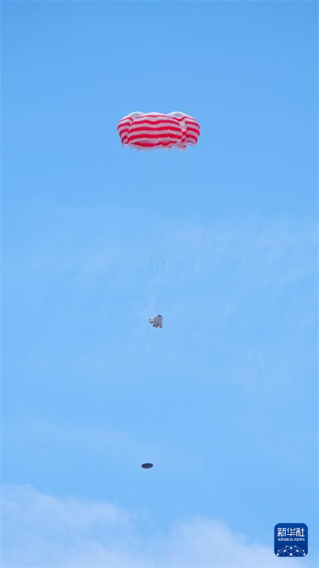 às 12h32, a cápsula de retorno aterrissou com seguran?a na área prevista do campo de testes, utilizando almofadas de ar para amortecer o impacto. O teste foi um sucesso completo.