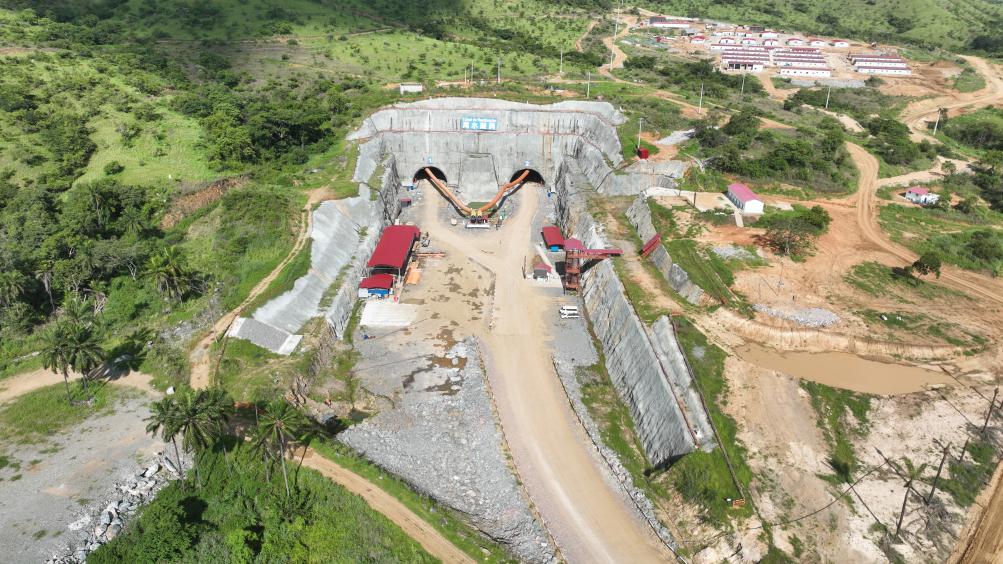 Foto de 16 de junho mostra uma vista da constru??o do túnel de descarga de água da usina hidrelétrica de Caculo Caba?a, na Província de Cuanza Norte, em Angola. (China Gezhouba Group Co. Ltd./Xinhua)