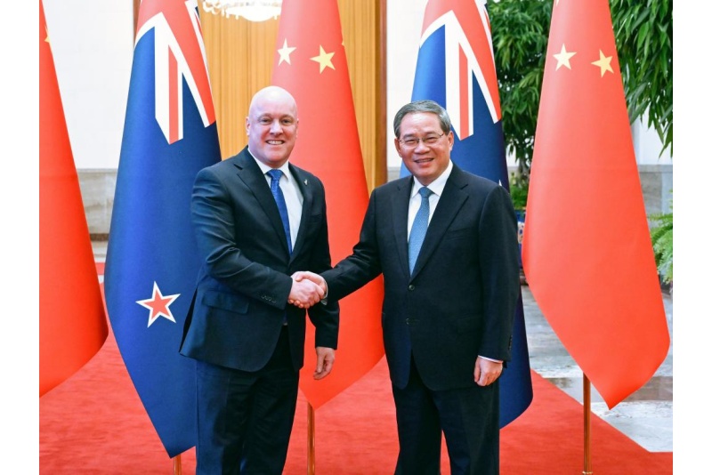 O primeiro-ministro chinês, Li Qiang, realizou conversas com o primeiro-ministro da Nova Zelandia, Christopher Luxon, em Beijing na última sexta-feira.