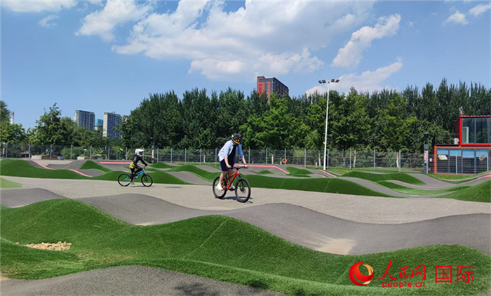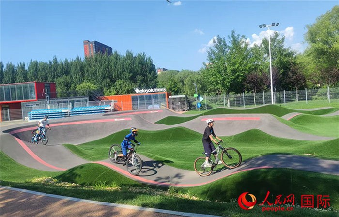 Jovens praticando ciclismo na pump track. (Foto: Zhang Lulu, Diário do Povo Online)