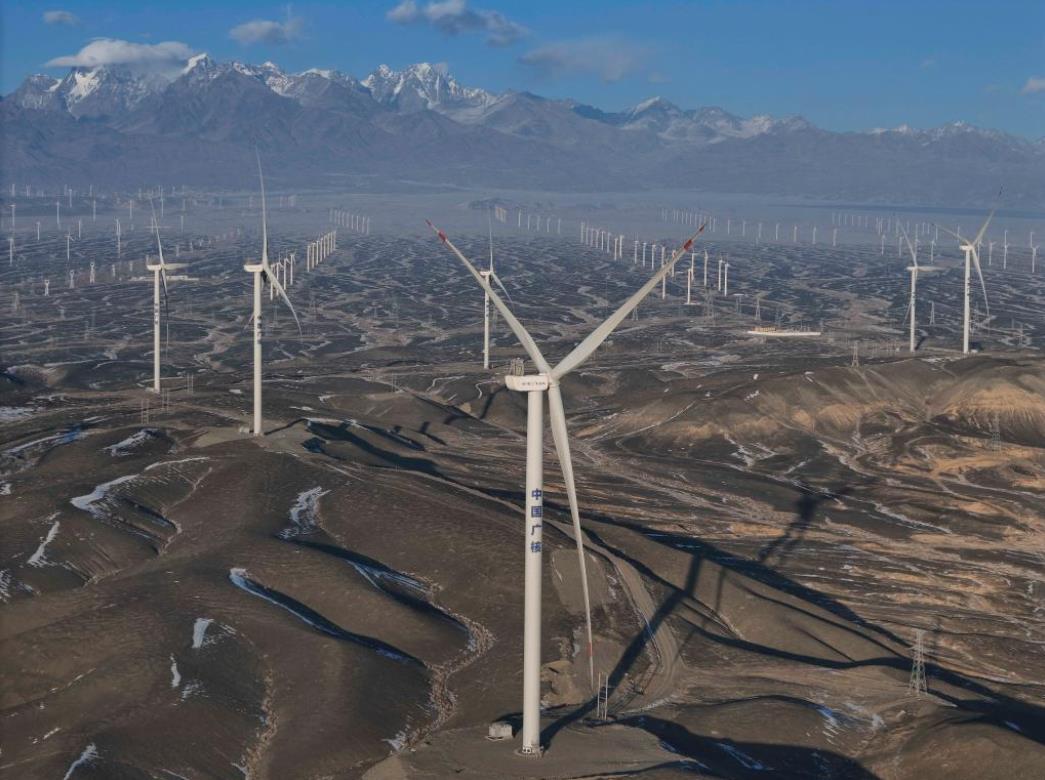 Turbinas eólicas em Dabancheng, também conhecido como "Vale dos Ventos da China", na Regi?o Aut?noma Uigur de Xinjiang, no noroeste da China. (Hu Huhu/Xinhua)