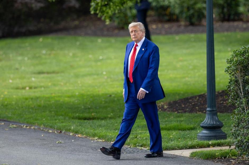 O presidente dos EUA, Donald Trump, caminha em dire??o ao gramado sul para embarcar no Marine One na Casa Branca em Washington, D.C., Estados Unidos, em 20 de junho de 2025. (Foto: Hu Yousong/Xinhua)
