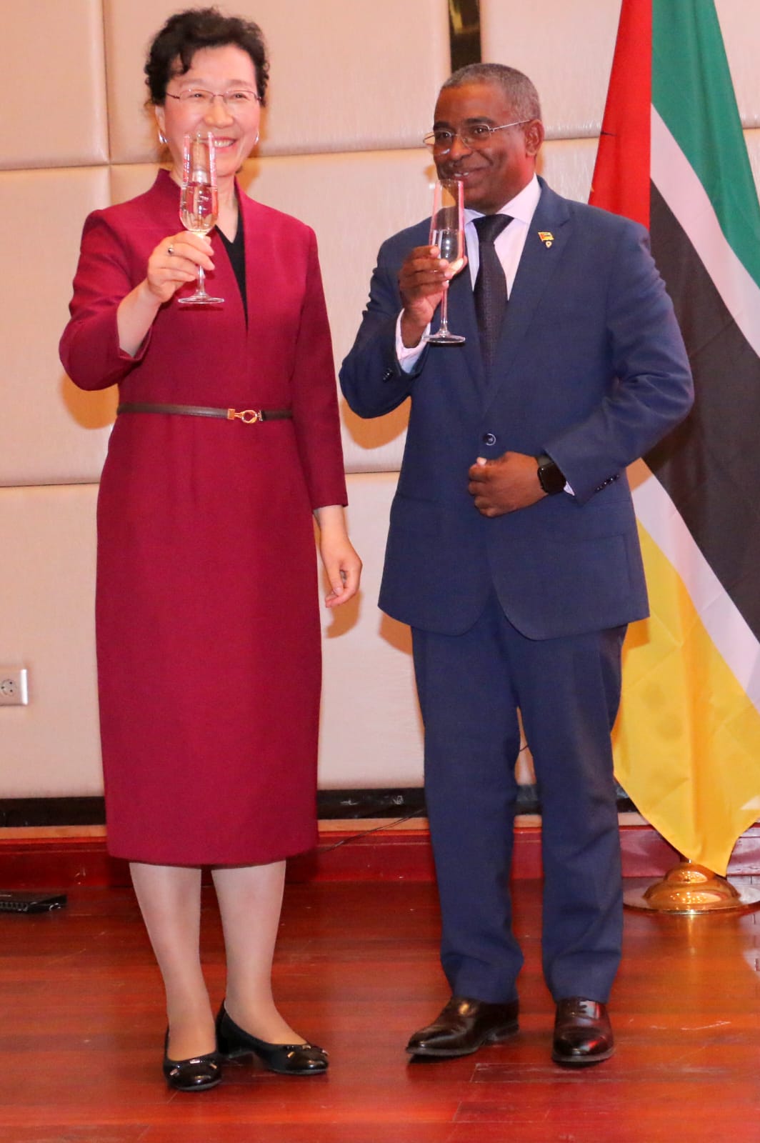 O evento, organizado pela Embaixada da China, teve lugar no prestigiado espa?o da diplomacia internacional e contou com a presen?a de figuras de alto nível do Governo mo?ambicano, lideradas por Sua Excelência Ussene Hilário Isse, Ministro da Saúde, que representou oficialmente o Governo da República de Mo?ambique. Em destaque esteve ainda a apresenta??o formal da nova Embaixadora da China em Mo?ambique, Excelentíssima Senhora Zheng Xuan — a primeira mulher chinesa a assumir este cargo na história das rela??es bilaterais.