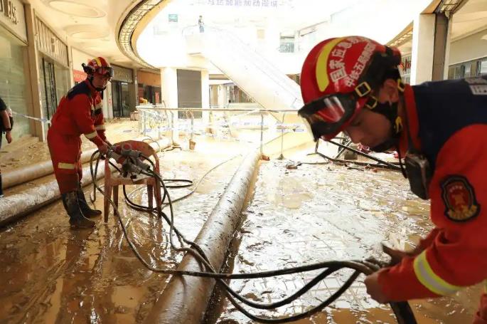 No maior centro comercial da regi?o, o Changchi Plaza, o subsolo foi completamente inundado, chegando a uma profundidade de até 6 metros. às 7h30 do dia 30, após 117 horas de bombeamento contínuo, o escoamento da água no shopping foi concluído.