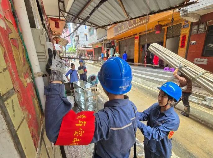 Técnicos fazem a substitui??o dos medidores de energia danificados nas residências do centro urbano. (Foto: Xie Shiyu/Xinhua)