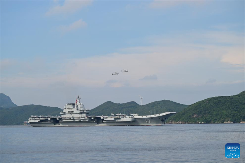 Porta-avi?es Shandong navegando nas águas de Hong Kong, sul da China, em 3 de julho de 2025. (Zhu Wei/Xinhua)
