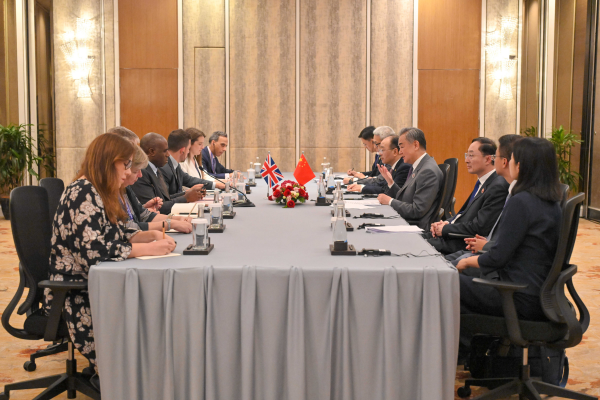 O ministro das Rela??es Exteriores da China, Wang Yi, reuniu-se na última sexta-feira com o secretário de Rela??es Exteriores britanico, David Lammy, em Kuala Lumpur, Malásia, dizendo que, sob a orienta??o estratégica dos líderes dos dois lados, as rela??es bilaterais est?o no caminho certo de melhoria e desenvolvimento.