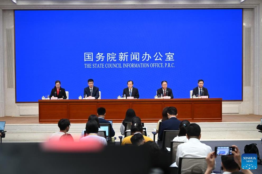 O Gabinete de Informa??o do Conselho de Estado da China realiza uma coletiva de imprensa sobre as conquistas no fortalecimento do setor de transportes do país, durante o período do 14o Plano Quinquenal (2021-2025), em Beijing, capital da China, em 21 de julho de 2025. (Chen Yehua/Xinhua)