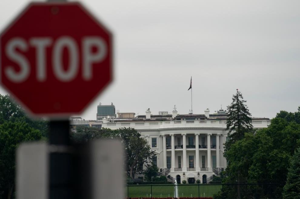 Casa Branca e um sinal de parada em Washington, D.C., Estados Unidos, em 22 de junho de 2022. (Foto: Liu Jie/Xinhua)