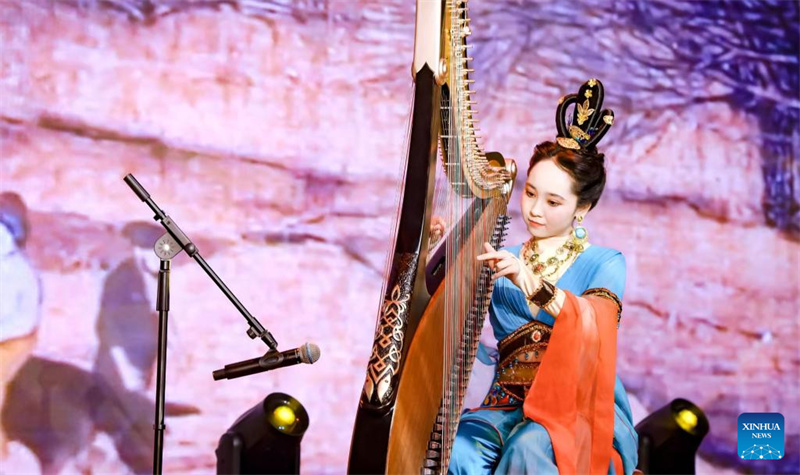 Aydina Yasen toca Konghou durante uma apresenta??o em Beijing, capital da China, em 23 de janeiro de 2024. (Foto: Xinhua)