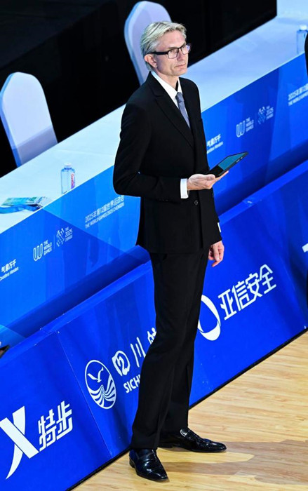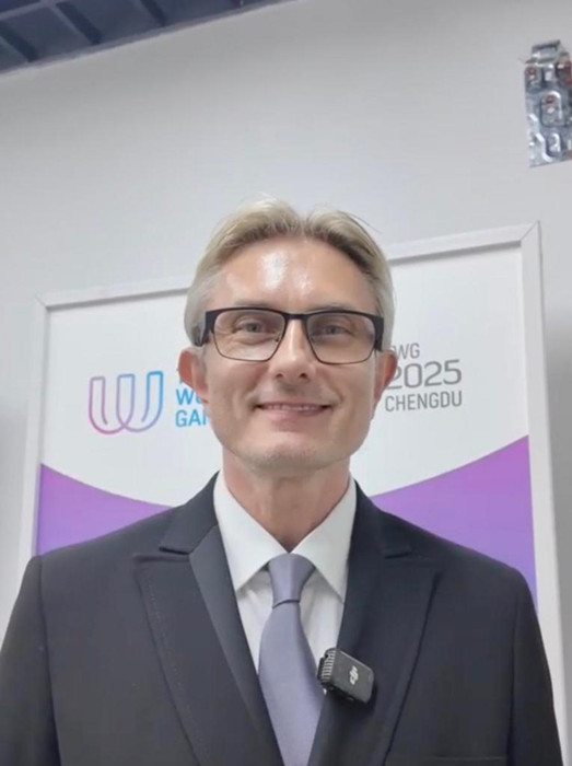 O juiz let?o Sergejs Sinkins se tornou uma sensa??o inesperada na competi??o de dan?a esportiva dos Jogos Mundiais em Chengdu.