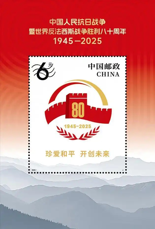A China Post emitirá selos comemorativos em 3 de setembro para marcar o 80o aniversário da vitória na Guerra de Resistência do Povo Chinês contra a Agress?o Japonesa e na Guerra Antifascista Mundial.