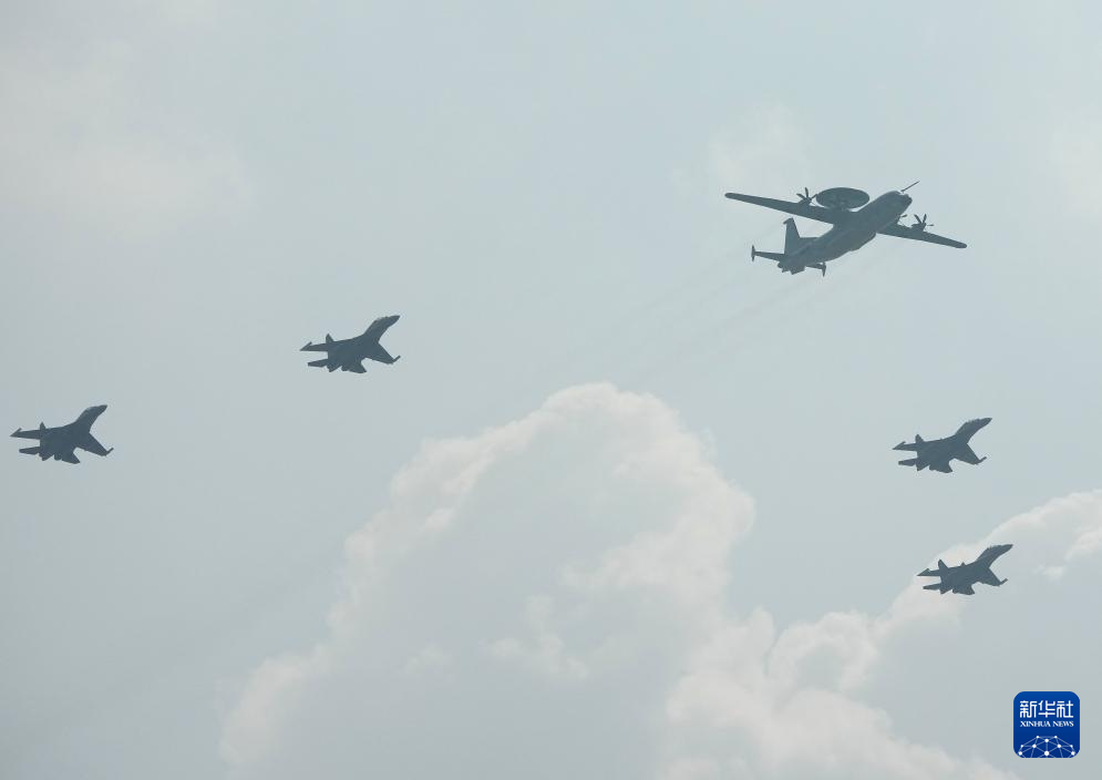 A aeronave de alerta precoce KongJing-500A, escoltada pelo avi?o de ca?a J-16, e a KongJing-600, escoltada pelo avi?o de ca?a J-15T baseado em porta-avi?es, voaram sobre a Pra?a Tian'anmen no desfile militar do Dia da Vitória desta quarta-feira.