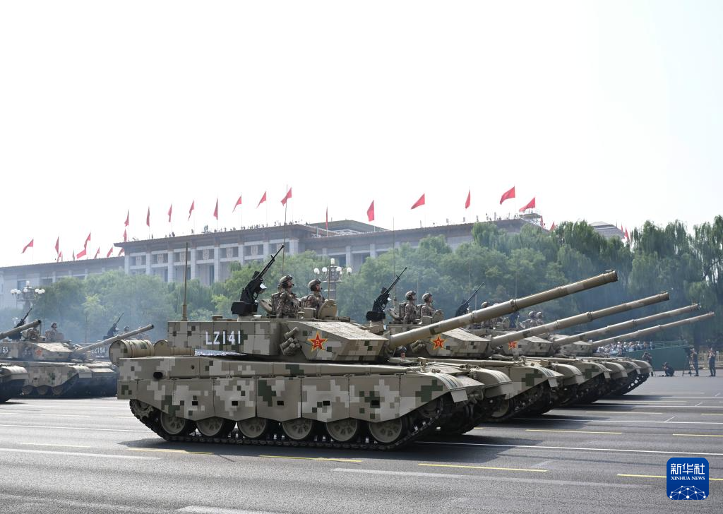Uma forma??o de assalto terrestre composta por veículos blindados de nova gera??o do Exército de Liberta??o Popular, incluindo tanques Type-100 e veículos de combate Type-100, passou pela Pra?a Tian'anmen.