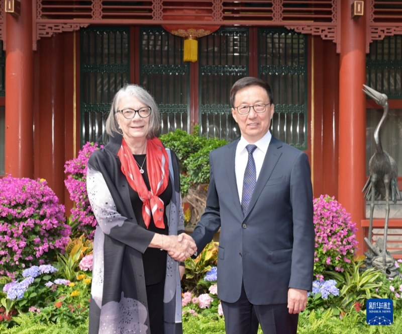 O vice-presidente chinês, Han Zheng, reuniu-se nesta quinta-feira com Kate Forbes, presidente da Federa??o Internacional das Sociedades da Cruz Vermelha e do Crescente Vermelho.