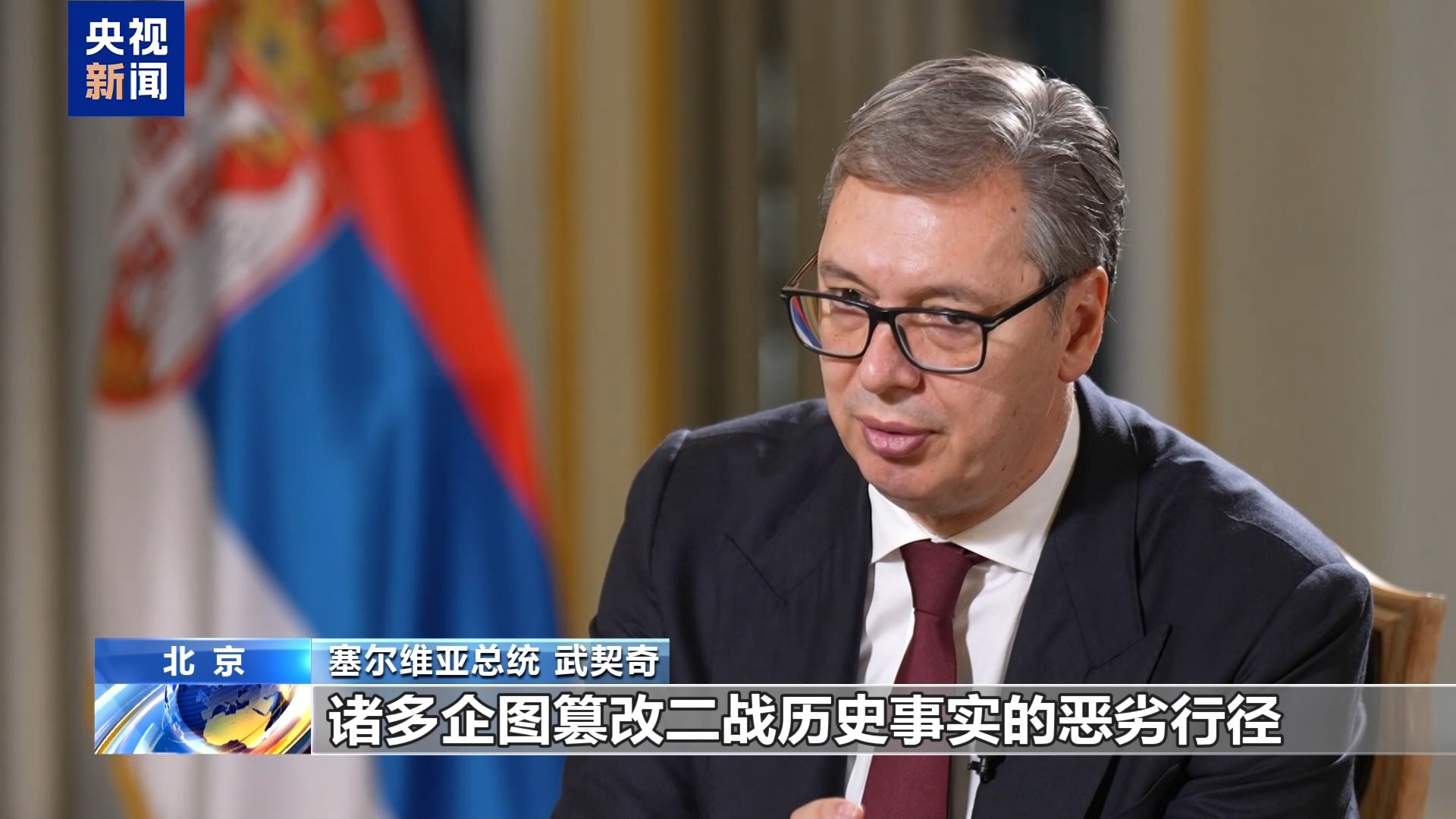 O presidente da Sérvia reconheceu que, em todo o planeta, existem vários atos flagrantes que tentam distorcer os fatos históricos da Segunda Guerra Mundial. Ele revelou que, na reuni?o com presidente Xi Jinping, este expressou firme oposi??o a esses atos flagrantes e manifestou orgulho pela luta valente da China na Segunda Guerra Mundial. “Isso é a nossa responsabilidade e miss?o na qual precisamos persistir”, concluiu o chefe de Estado europeu.