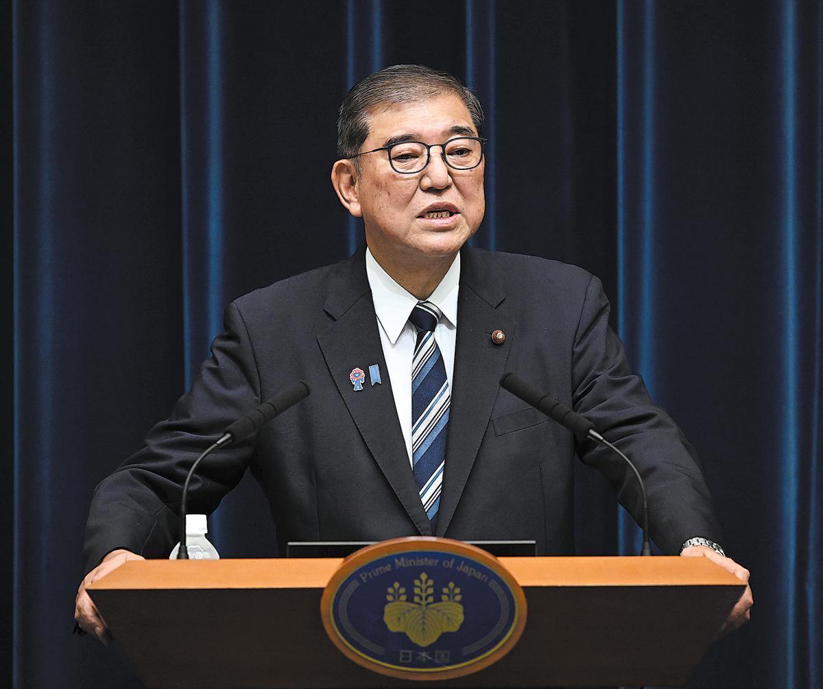 O primeiro-ministro japonês, Shigeru Ishiba, discursa em uma coletiva de imprensa onde anunciou sua decis?o de renunciar, no domingo, em Tóquio, Jap?o.