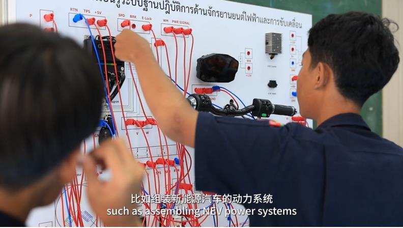 A segunda fase da Oficina Lu Ban na Tailandia abriu um curso de tecnologia para veículos de novas energias. A Faculdade Técnica Profissional Bohai de Tianjin forneceu amplo equipamento e patrocinou treinamento para professores tailandeses na China, permitindo-lhes dominar conhecimentos e tecnologias de ponta.