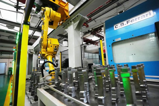 Bra?o robótico opera em uma linha de produ??o inteligente da Harbin Turbine Company Ltd. em Harbin, na Província de Heilongjiang, nordeste da China, em 26 de fevereiro de 2025. (Xinhua/Wang Song)