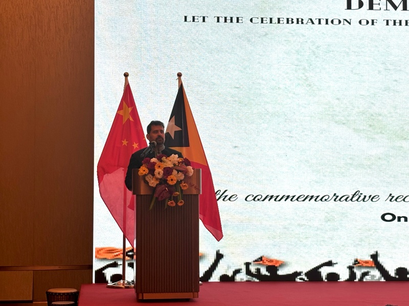 Durante seu discurso, o vice-primeiro-ministro de Timor-Leste, Francisco Kalbuadi Lay, destacou a importancia de celebrar este momento histórico em Beijing, lembrando que a China foi um dos primeiros paises a reconhecer e apoiar Timor-Leste após a declara??o de independência em 1975, e também o primeiro a estabelecer uma embaixada no país, após a restaura??o da independência em 2002.