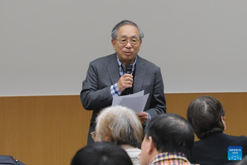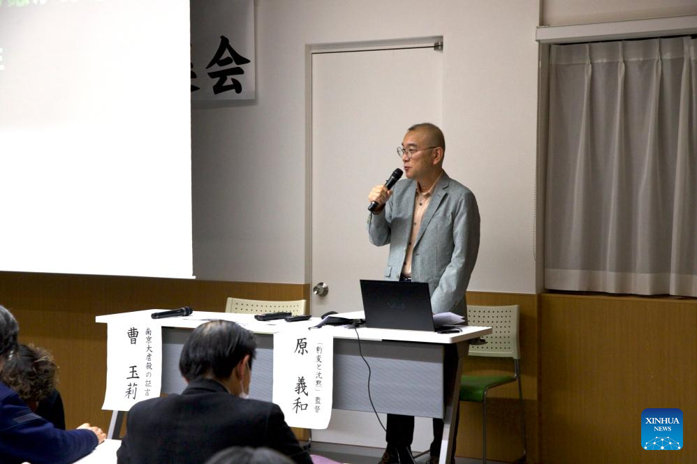 O diretor japonês, Yoshikazu Hara, discursa em uma reuni?o de depoimentos sobre o Massacre de Nanjing em Tóquio, Jap?o, em 11 de dezembro de 2025. (Xinhua/Li Ziyue)